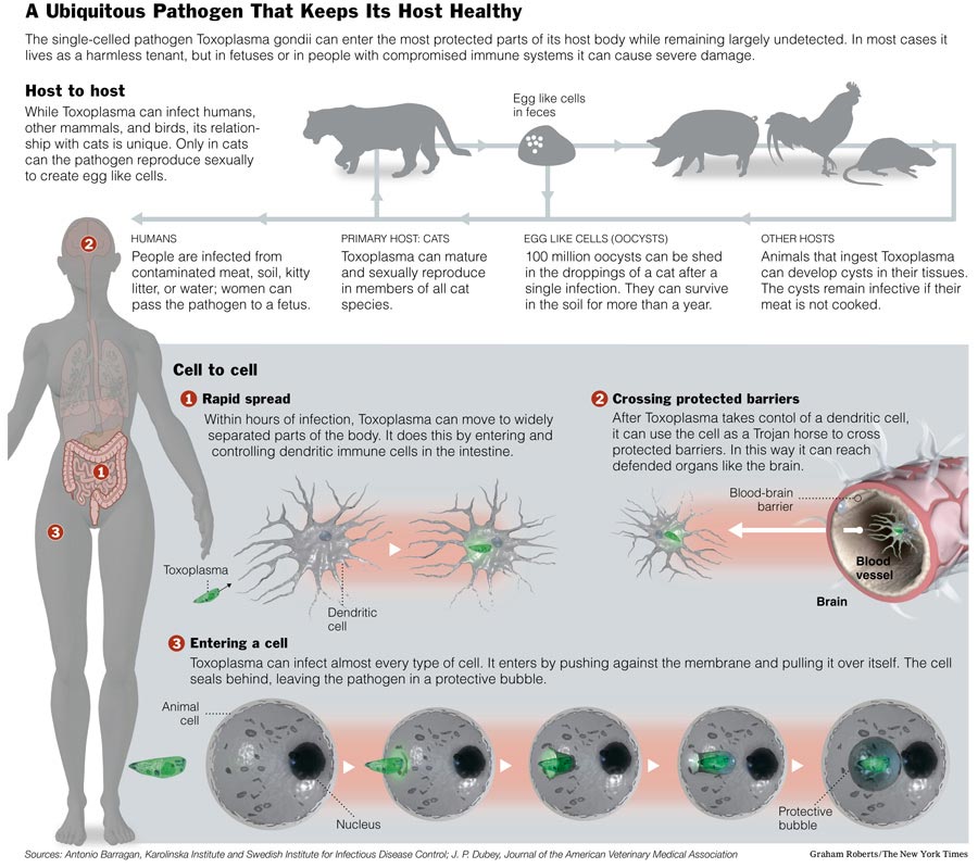 Here’s an abstract of an interesting paper, ‘Can the common brain parasite, Toxoplasma gondii, influence human culture? by Kevin D. Lafferty ;